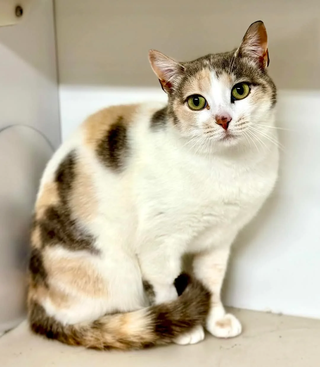 Jewel absolutely adores gentle pats and affection from her humans. Her calm, laid-back personality makes her a joy to be around, and we believe she could comfortably share her home with other cats or even dogs, though she hasn’t been formally tested.